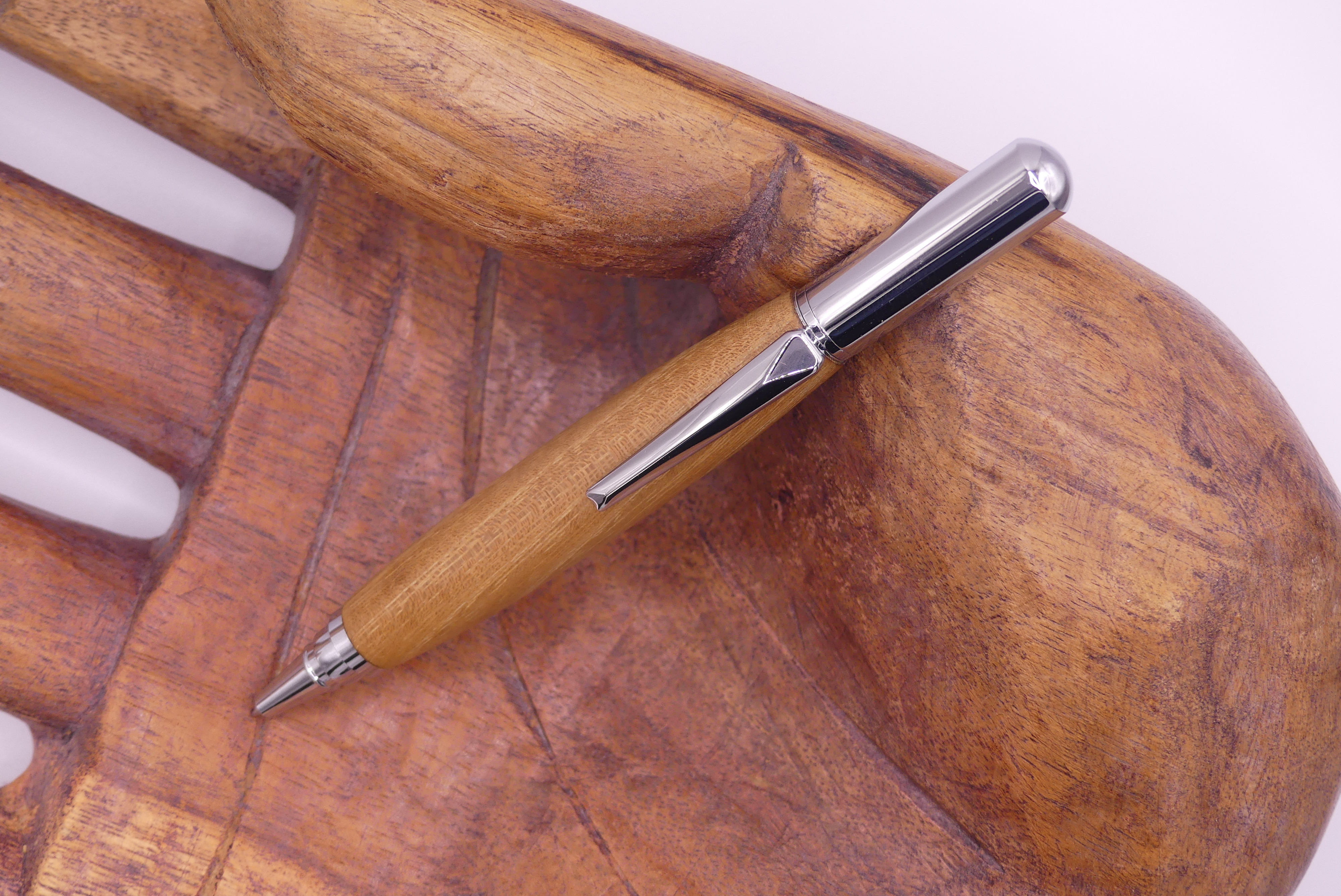 Fabriqué dans un bois noble et naturel, ce stylo en acacia allie élégance et robustesse. L’acacia est reconnu pour sa durabilité exceptionnelle : résistant aux chocs, au temps et aux usages du quotidien, il conserve sa beauté année après année. Son coloris est chaleureux, oscillant entre le brun doré et le miel, et son grain fin aux fibres droites lui donnent un aspect authentique et raffiné.