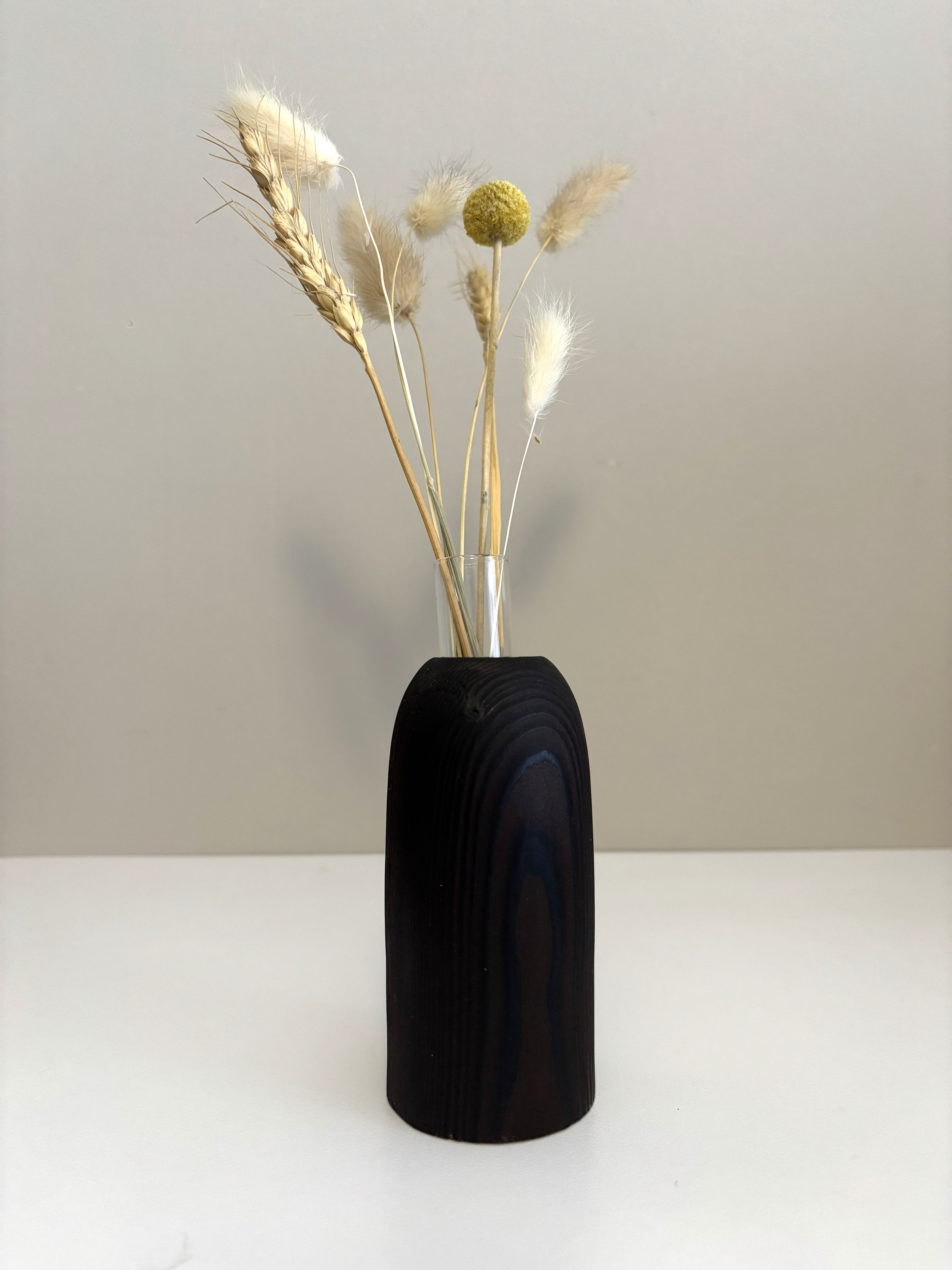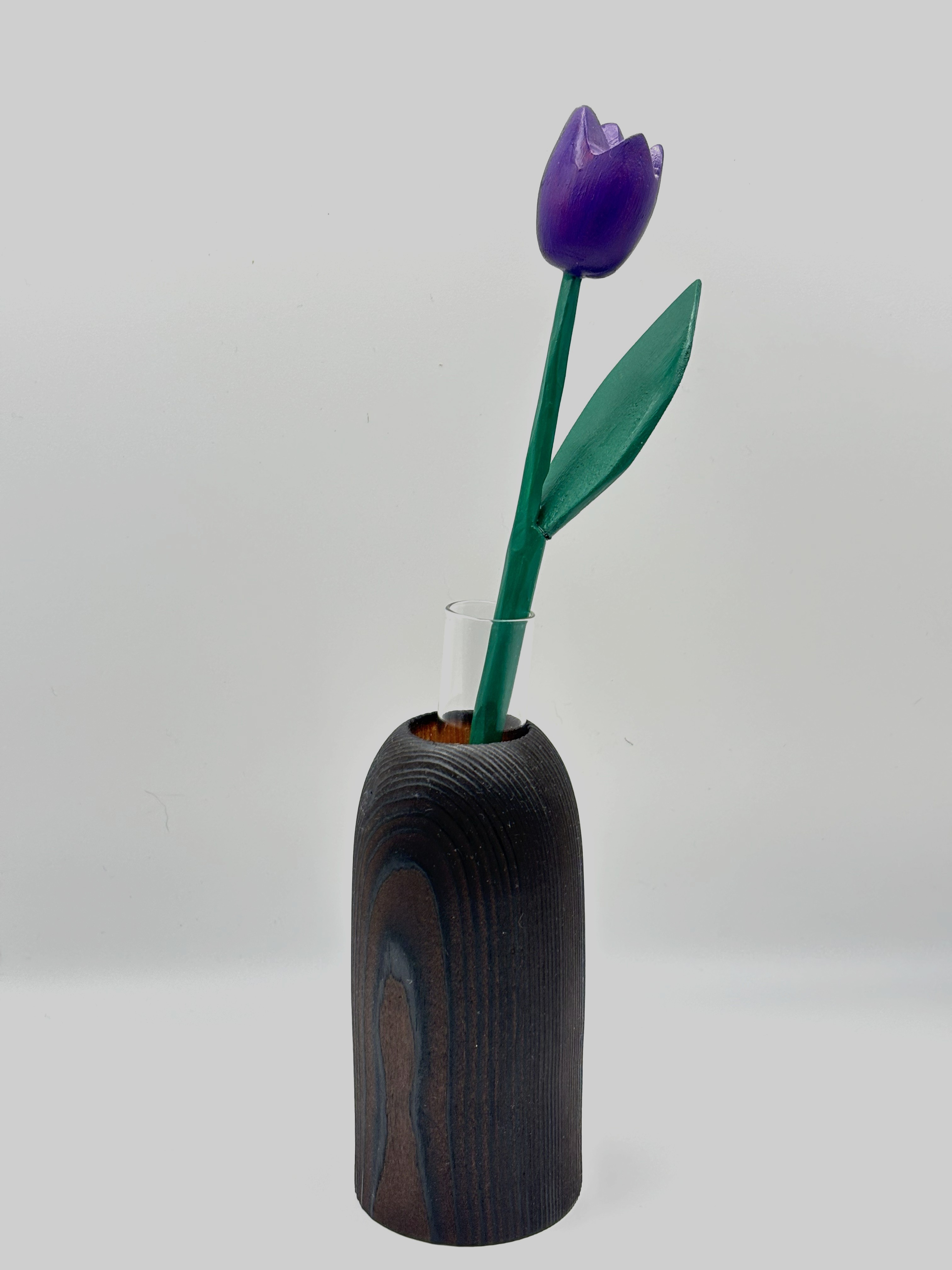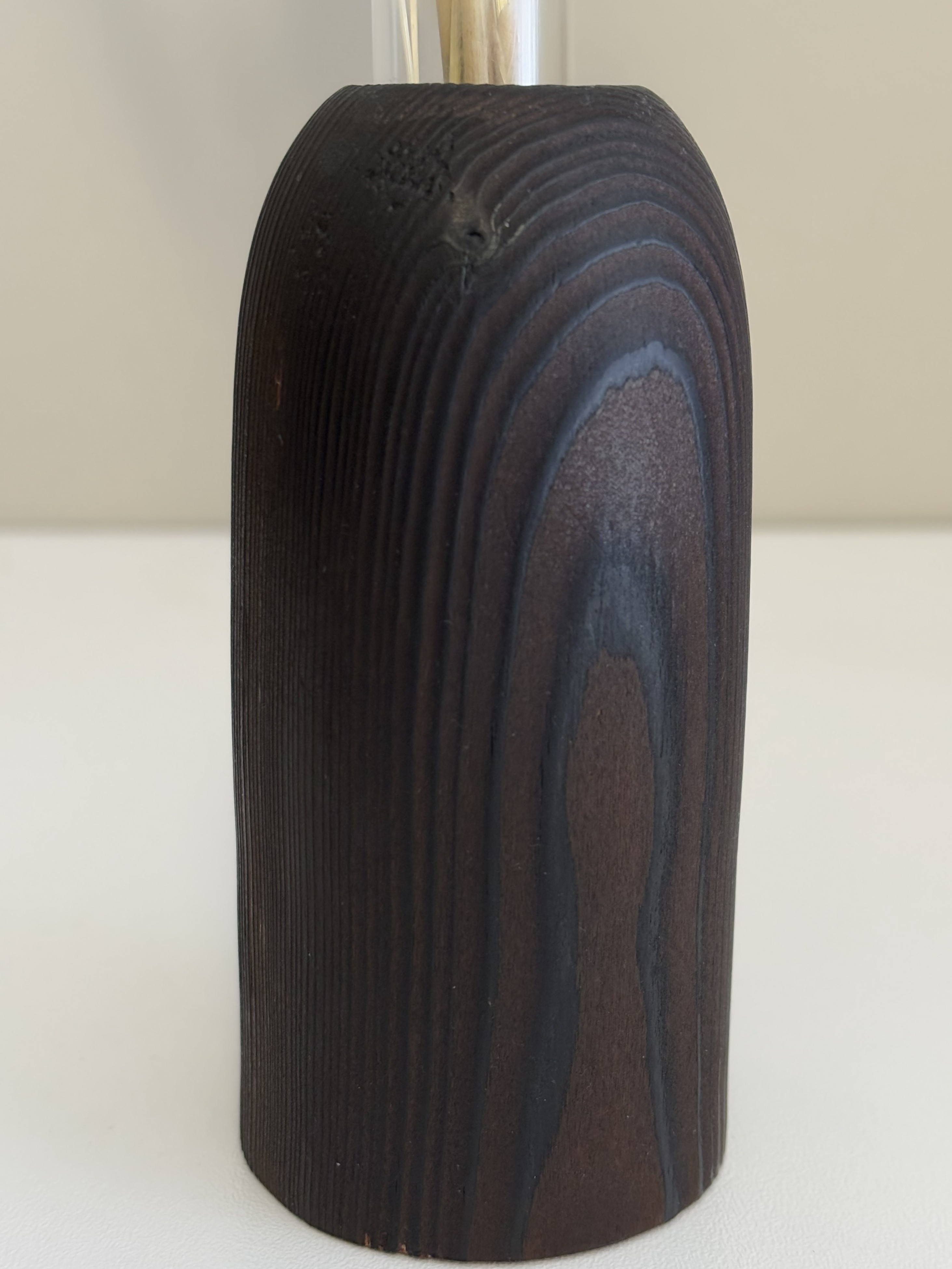 Fabriqué en Limousin, dans mon atelier, sur un tour à bois, ce soliflore livré avec son tube verre est fait pour durer. Cette  pièce a été tournée avec soin, polie, brulée au chalumeau puis huilée pour un toucher durable et naturel.